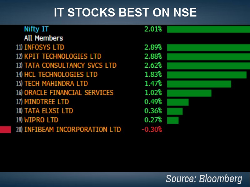 NCC: The Hyderabad-based construction company rose as much as 6.3 percent to Rs 112 after it profit met Bloomberg consensus estimates in March quarter.
