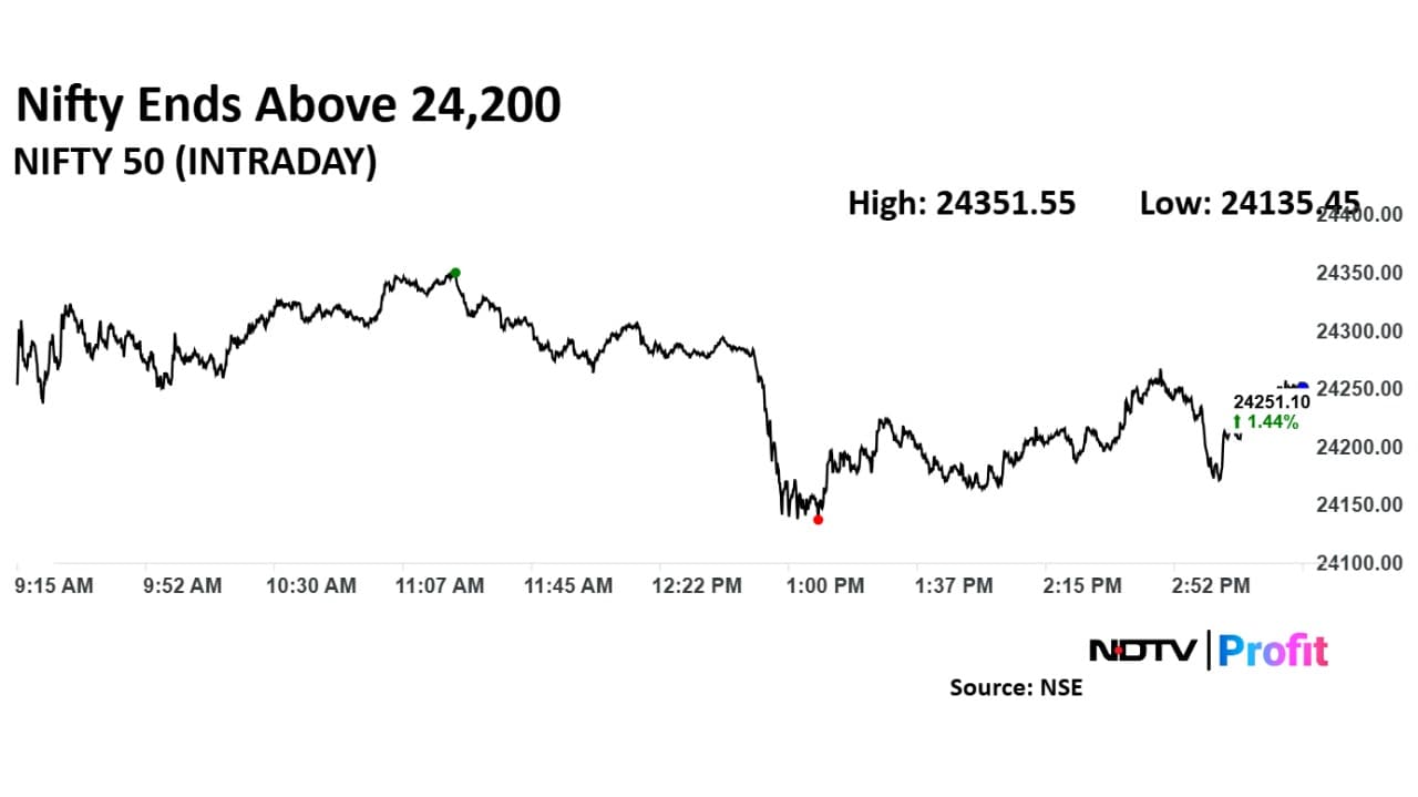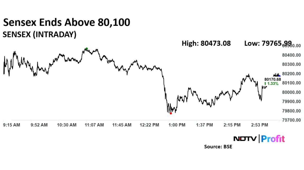 The Nifty closed 314.65 points or 1.32% up at 24,221.90, while the Sensex ended 992.74 points or 1.25% higher at 80,109.85. During the day, both the Nifty and the Sensex rose nearly 2% to hit their highest levels since Nov. 7.