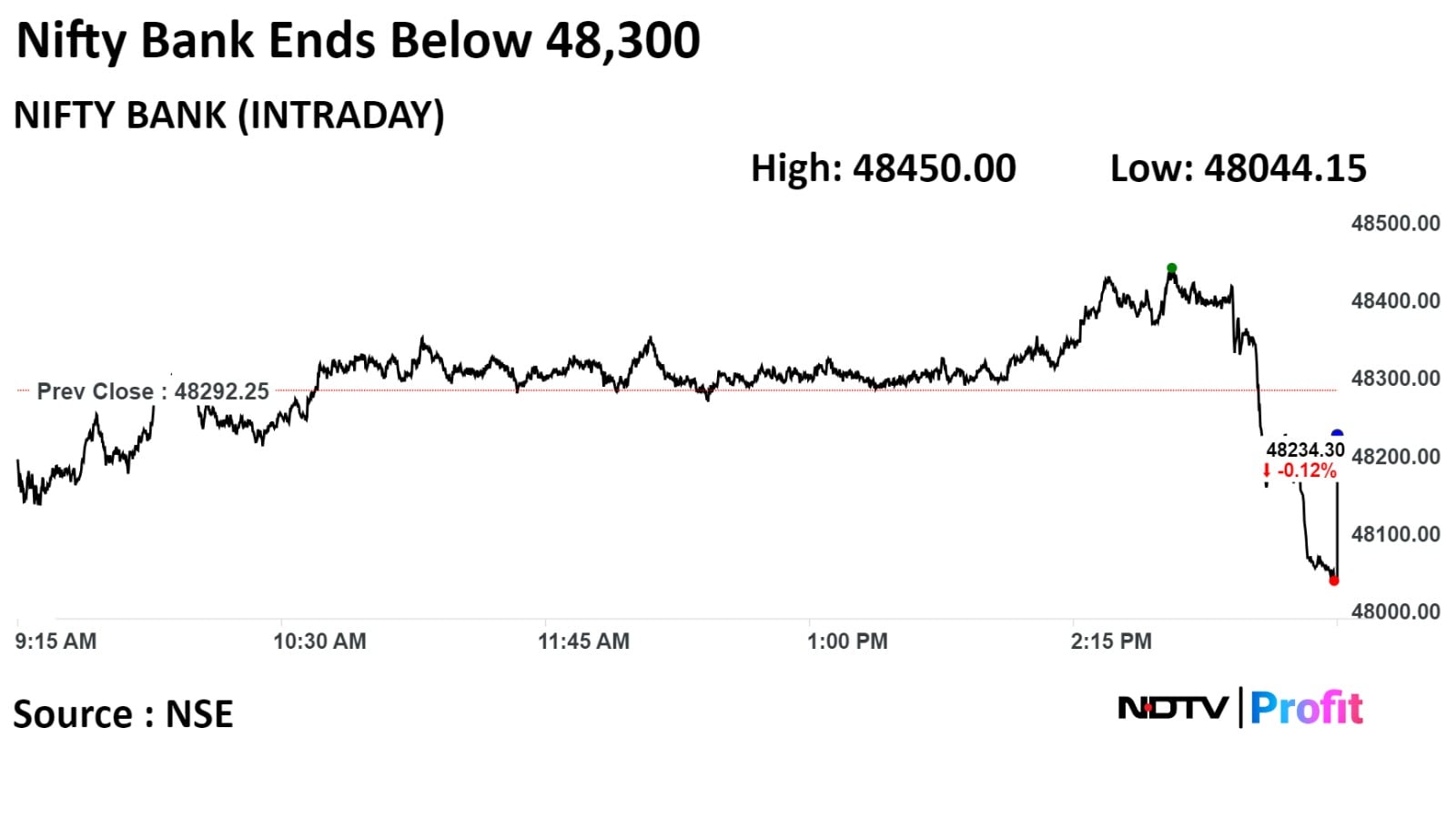 India's benchmark indices ended the first day of 2024 little changed on Monday as market participants indulged in profit booking after both indices hit record highs on Monday.