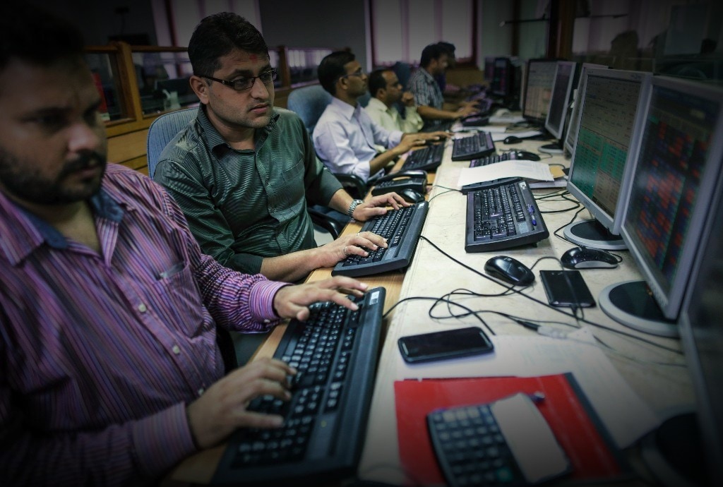 Stockbrokers at a brokerage in Mumbai. (Photographer: Dhiraj Singh/Bloomberg)