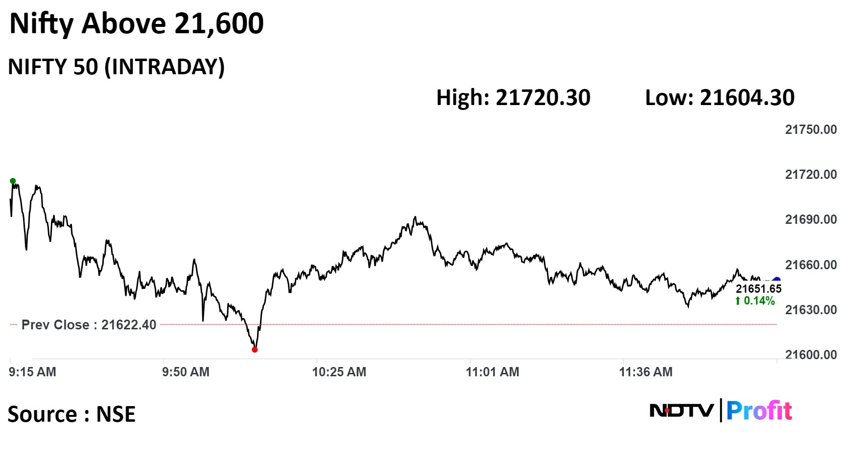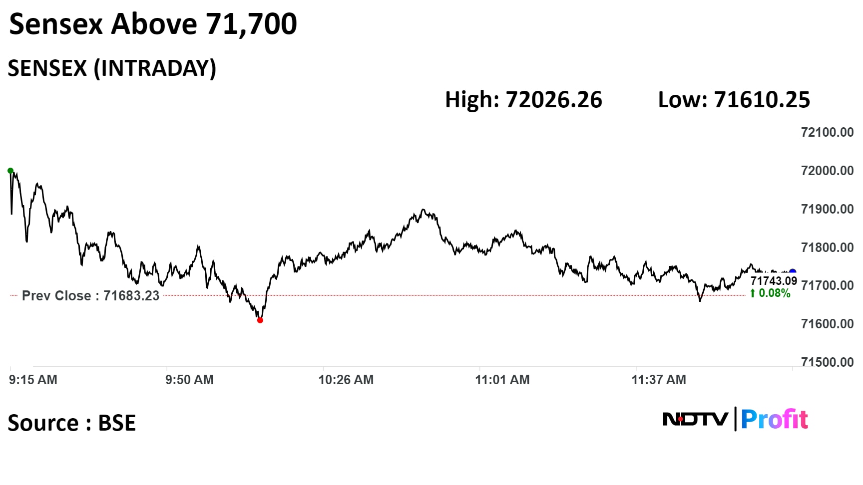Intraday, the Sensex rose to 72,026.26, while the Nifty 50 touched a high of 21,720.30.