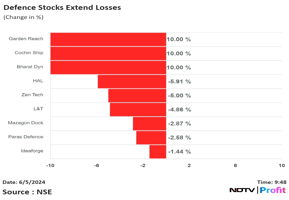 Adani Group Stocks Gain NDTV PROFIT INVEST 2029: Register Now! Sensex, Nifty Recovers A Day After Worst Market Crash In Four Years: Midday Market Update Big Movers  CLSA Tweaks India Portfolio After Election Outcome Moody's On India Election Outcome  Nifty Auto Hits Record  Lupin Completes Acquisition Of Two Brands RBI Okays Zurich Insurance Acquisition In Kotak General Broader Indices Catch Up Chandrababu Naidu Affirms Commitment to NDA Volatility Gauge Falls As Benchmarks Rise Heritage Foods Hits Lifetime High As Founder Wins Lok Sabha Elections From Andhra Pradesh Defence Stocks Fall  FMCG Stocks Rise Hindalco Shares Fall As Novelis IPO Postponed Three Nifty Stocks Hit Record High Some Sectoral Indices Fall After Higher Opening Nifty Opens Over 200 Points Higher As RIL, HDFC Bank Lead Gains: Opening Bell Nifty, Sensex Higher At Pre-Open Yield On The 10-Year Bond Flat Rupee Strengthens Against US Dollar KEC International Gets New Orders Philip Capital on Lok Sabha Elections 2024: India Strategy Ixigo IPO Update Angel One-May Business Update IIFL on India Strategy Nuvama On Gujarat Gas Emkay on Hero Motocorp Morgan Stanley on India Equity Strategy Stocks Who's Near Term Rerating Looks Unlikely Emkay On Consumer Goods Prabhudas Lilladher India Strategy: Key Takeaways from General Elections Emkay Cuts Nifty's Target To 22,000 From 24,000 Nuvama Maintains 'Buy' On Gujarat Gas At Rs 676 Target Citi On India Brokers And Asset Managers Nuvama on Home Decor Sector: Prefer Plastic Pipes Over Tiles; Avoid Wood Panel Players Nuvama On Election Implication on Economy & Markets Hindalco Unit Novelis Postpones US IPO CLSA's India Strategy: Modi Stocks To Remain In Focus, Replace L&T With HCL Tech Bernstein On India Financials Bernstein's India Strategy After Surprise Verdict: Keep Nifty target unchanged at 23,500 Global Cues F&O Cues Trading Tweaks GIFT Nifty Trades Near 22,000