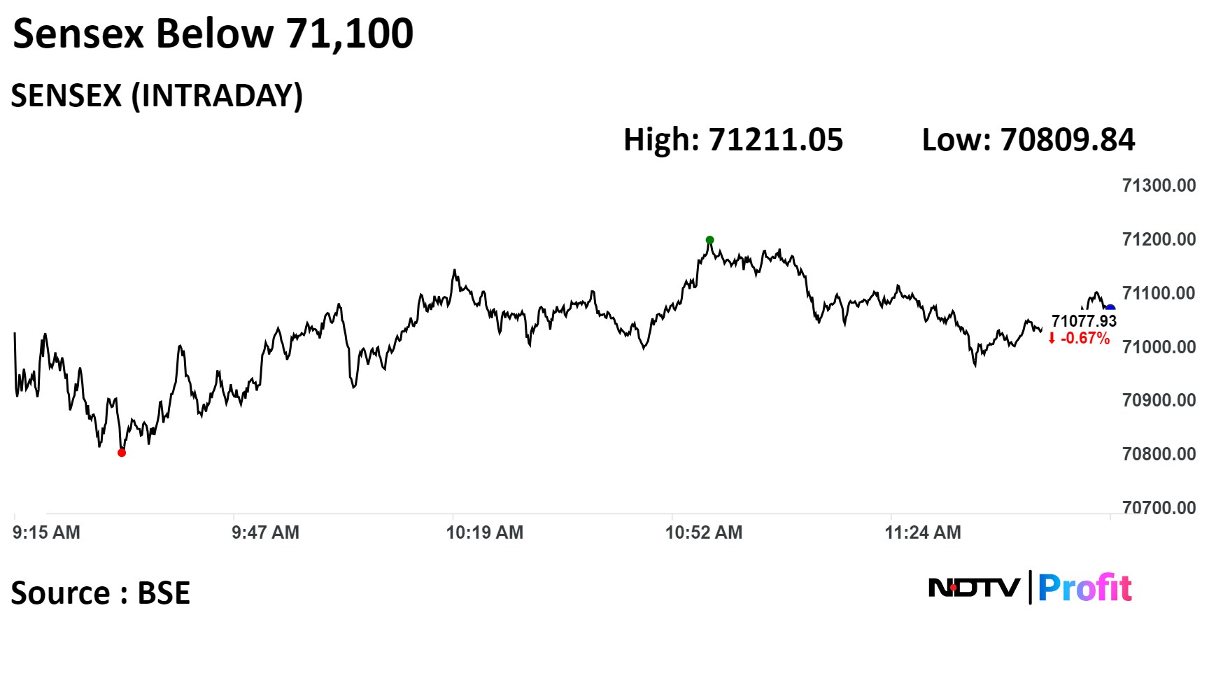 Sensex Slips Below 71,000, Nifty Nears 21,600 As Fed Rate Cut Hopes Wane: Midday Market Update