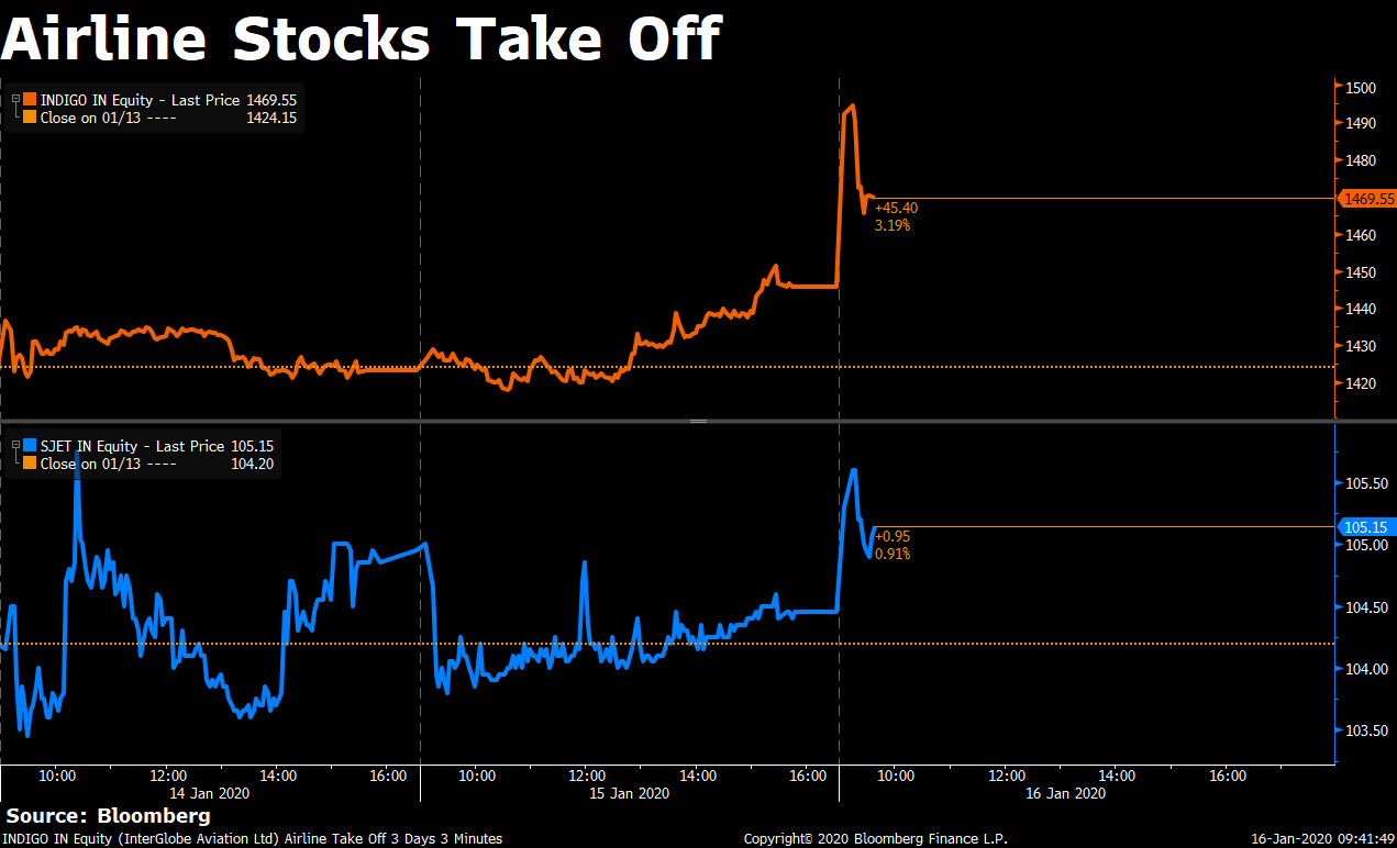 • InterGlobe Aviation: Qatar Airways chief executive officer said the company will buy as much stake of the company, as possible, according to Bloomberg report.
