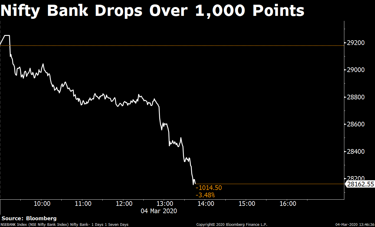 Shares of Yes Bank extended declines for the fourth consecutive trading session. The stock fell as much as 5.1 percent to Rs 29.60.