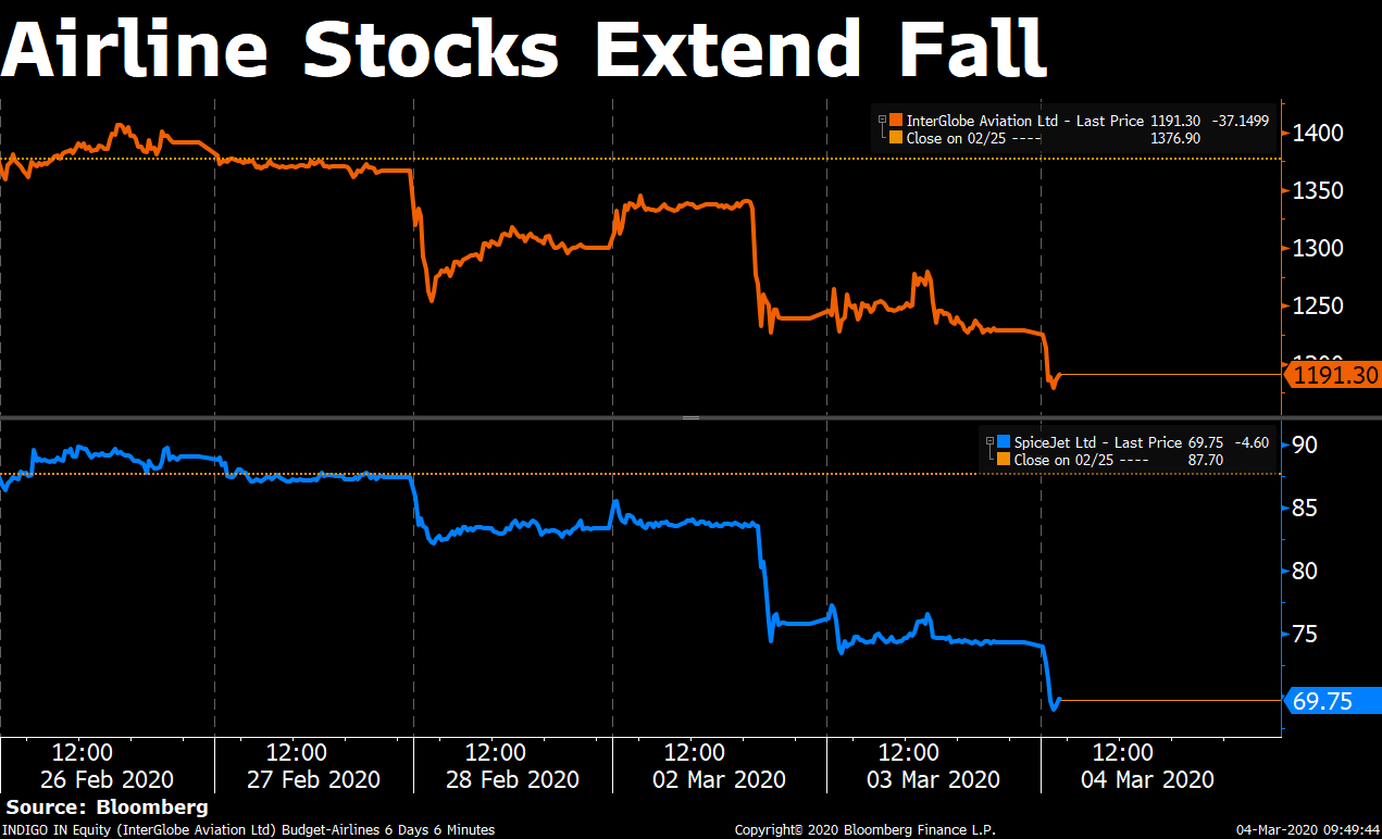 • The stock is falling over the coronavirus threat to sporting events like the IPL and the Olympics.