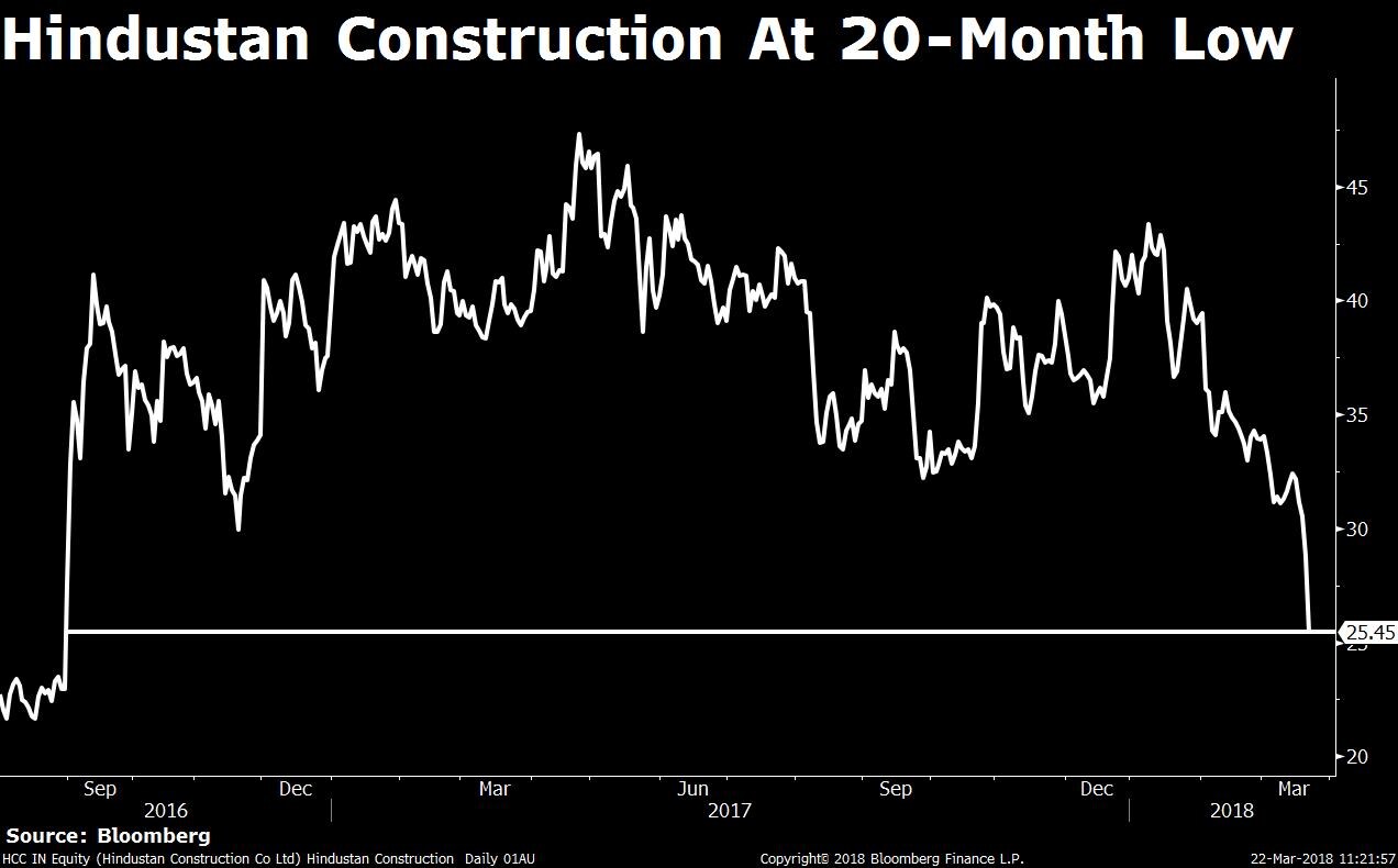 • Stock fell as much as 5.4 percent to Rs 118.75.