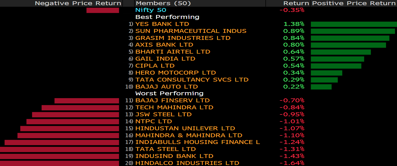 Indian equity benchmarks recovered from intraday low levels led by gains in Axis Bank, Yes Bank, ICICI Bank and HDFC twins.
