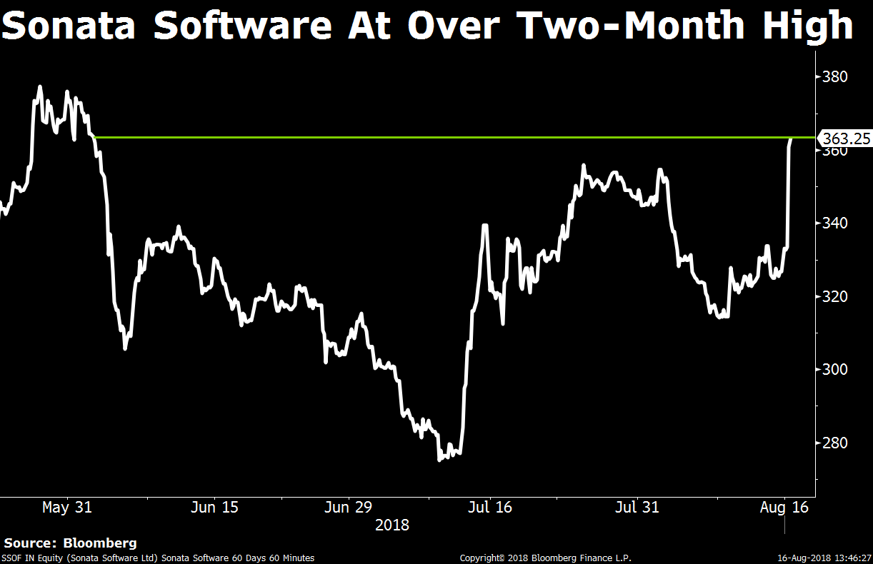 Shares of the software developer rose as much as 4.1 percent to Rs 4.1 percent.
