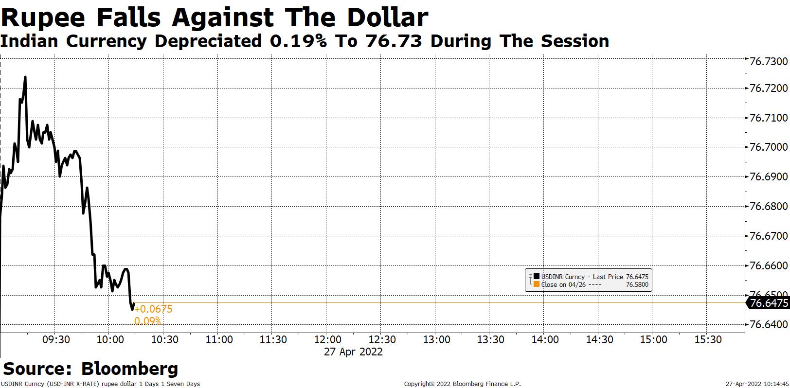 Indian government bond yields may rise and the rupee could open lower after Russia’s decision to halt natural gas flows to some European nations brings concerns about energy prices to the fore. Traders also await a Rs 33,000 crore ($4.3b) auction of Treasury bills.