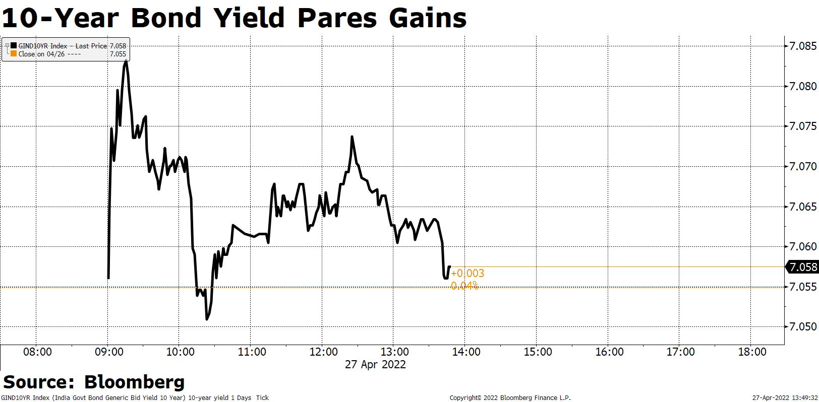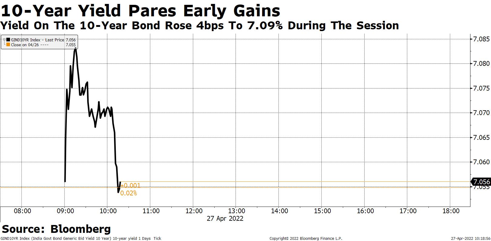 10-year yields rose 1bps to 7.05% on Tuesday