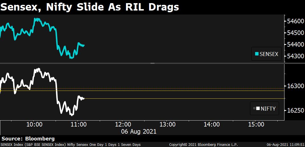 Index heavyweight Reliance Industries led the losses on Friday as it declined over 2% after the Supreme Court ruled in favour of Amazon against Future Retail and found the emergency arbitrator’s interim award to be valid.