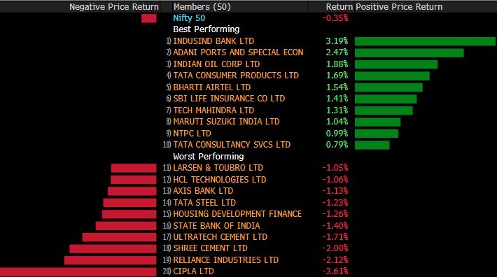 HDFC Bank Ltd. contributed the most to the index gain, increasing 0.3%. IndusInd Bank Ltd. had the largest increase, rising 2.7%.