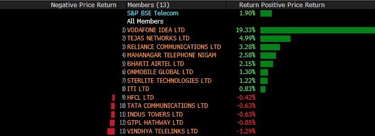 The broader markets outperformed the larger peers with both the BSE MidCap and BSE SmallCap gaining over 0.3%. Ten out of the 19 sectoral indices compiled by the BSE Ltd. advanced with S&P BSE Telecom Index gaining nearly 2%.