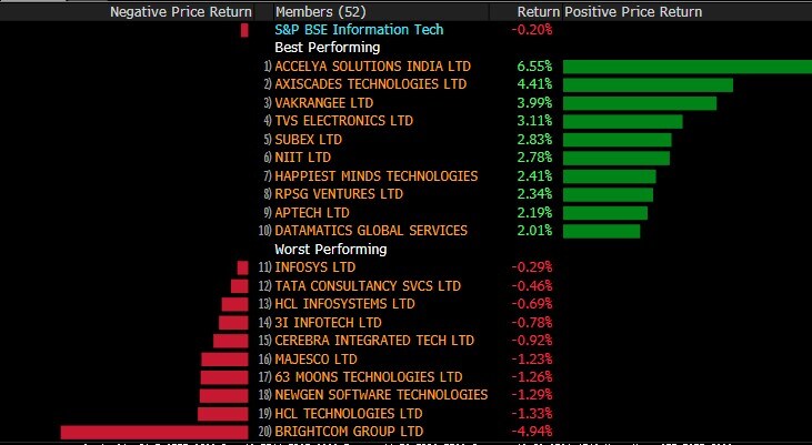 The broader markets outperformed their larger peers.. The BSE MidCap index gained 0.3% while the BSE SmallCap advanced nearly 0.5%. Barring BSE Information Technology and BSE Teck, all the other 17 sectoral indices compiled by the BSE Ltd gained.