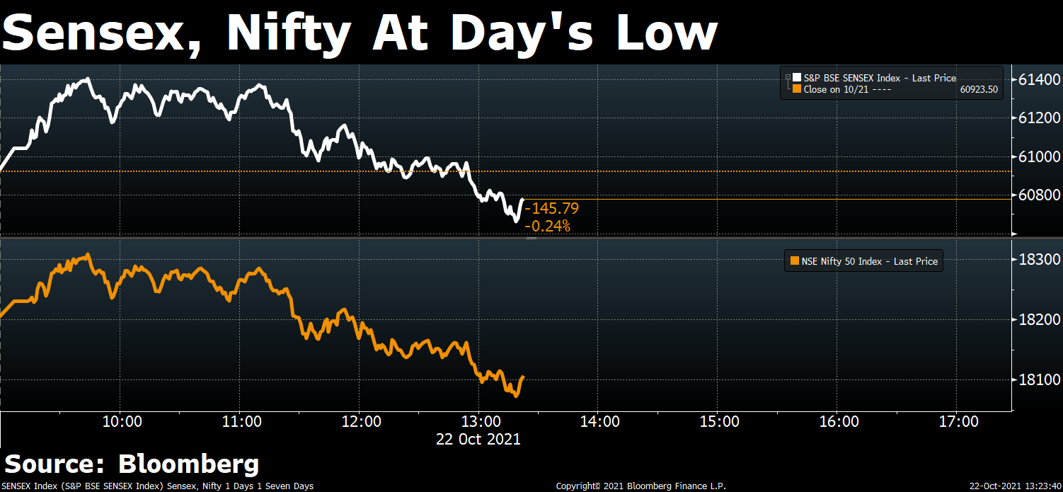 The broader indexes underperformed their larger peers with the S&P BSE MidCap index and the S&P BSE SmallCap declining 1%. Fifteen of the 19 sectoral indexes compiled by BSE Ltd. declined, with the S&P BSE Metal index falling nearly 3%
