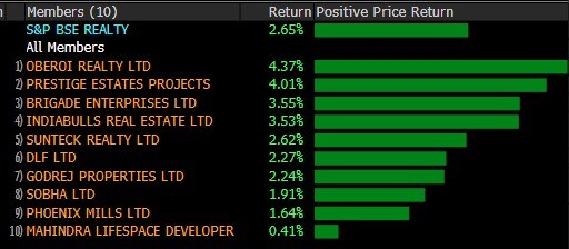 The broader indexes almost mirrored their broader peers with the S&P BSE MidCap index and the S&P BSE SmallCap gaining over 0.5%. Barring S&P BSE Metal and S&P BSE Information Technology indexes, all the other 17 sectoral indexes compiled by BSE Ltd. advanced, with the S&P BSE Realty index adding nearly 2%.