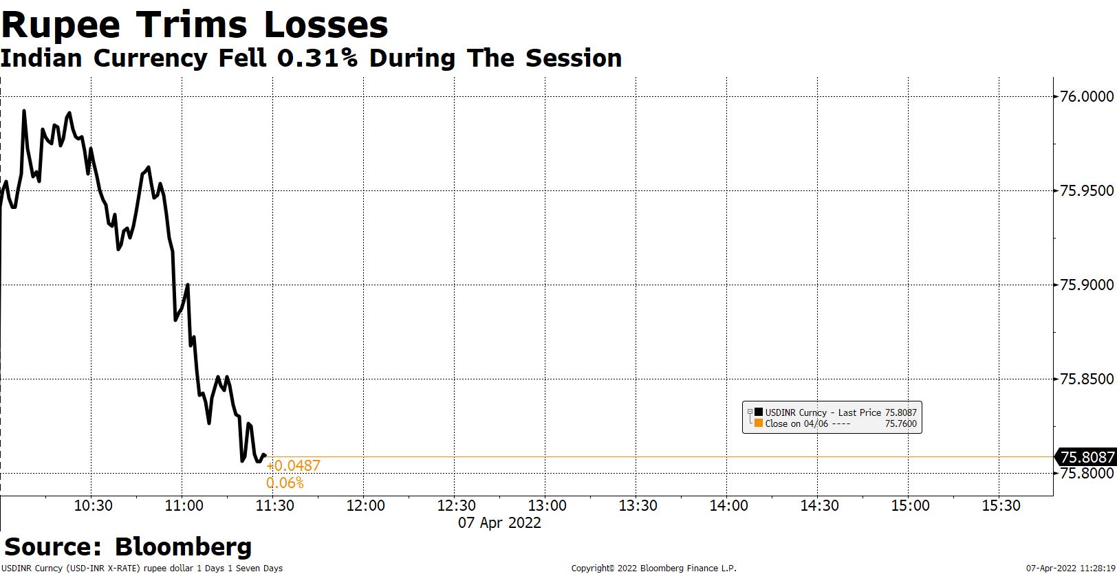 USD/INR rises 0.6% to 75.7600 on Wednesday.