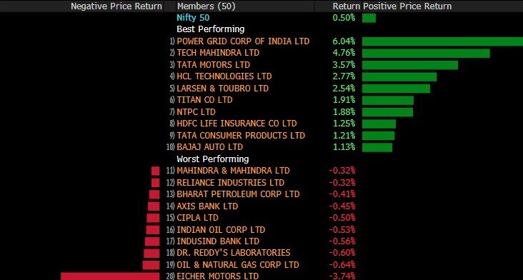India’s stock benchmarks rose to record high, aided by the gains in power and tech stocks as investors eyed key economic data due later in the day to gauge the extent and trajectory of economic recovery. .