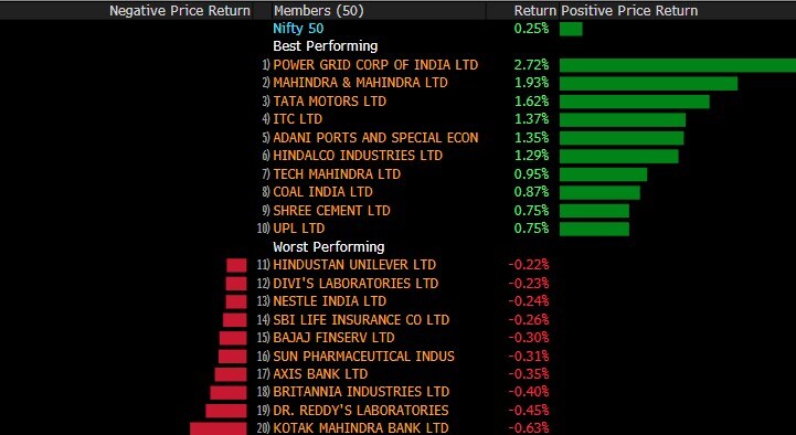 Shares of Power Grid Corporation of India Ltd. gained 4.03% to Rs 183.45 apiece, the most in two months. Trading in the company’s call options was triple the average. Trading volume was 18.3 million shares, almost triple the 20-day average of 6.28 million shares for this time of the day.