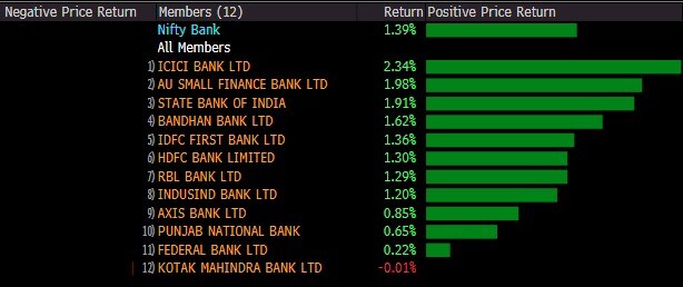 The market breadth was skewed in the favour of bulls. About 2,365 stocks advanced, 791 declined and 147 remained unchanged.