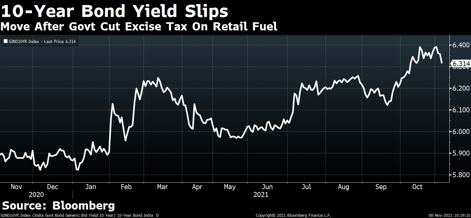 India bonds rose on optimism that inflation would slow after the federal government cut excise duty on gasoline and diesel. The rupee advanced for a sixth day as India’s biggest initial share sale opened for subscription.