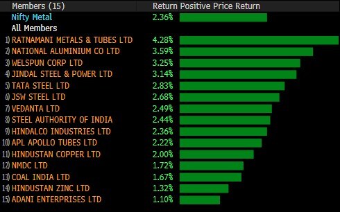 The broader indices almost mirrored their larger peers with the S&P BSE MidCap and S&P BSE MidCap gaining 1.9%. All the 19 sectoral indices compiled by the BSE Ltd. advanced, with S&P BSE Metal leading the gains, rising nearly 4%.
