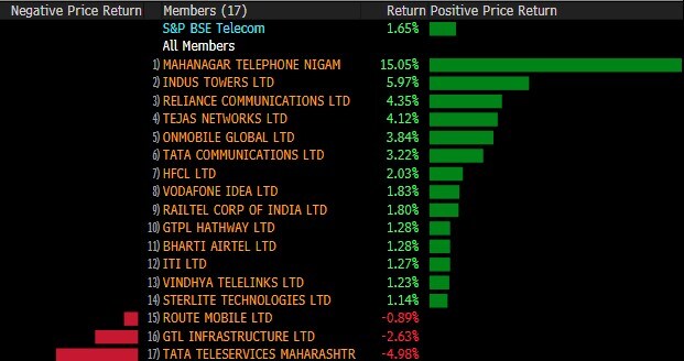 Shares of Indus Towers Ltd. rose 6.6%, the biggest intraday gain in a month, to Rs 253.5 apiece.
