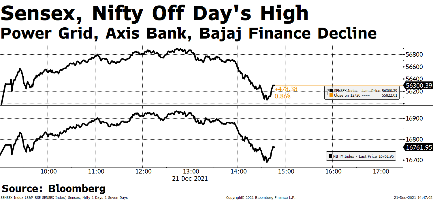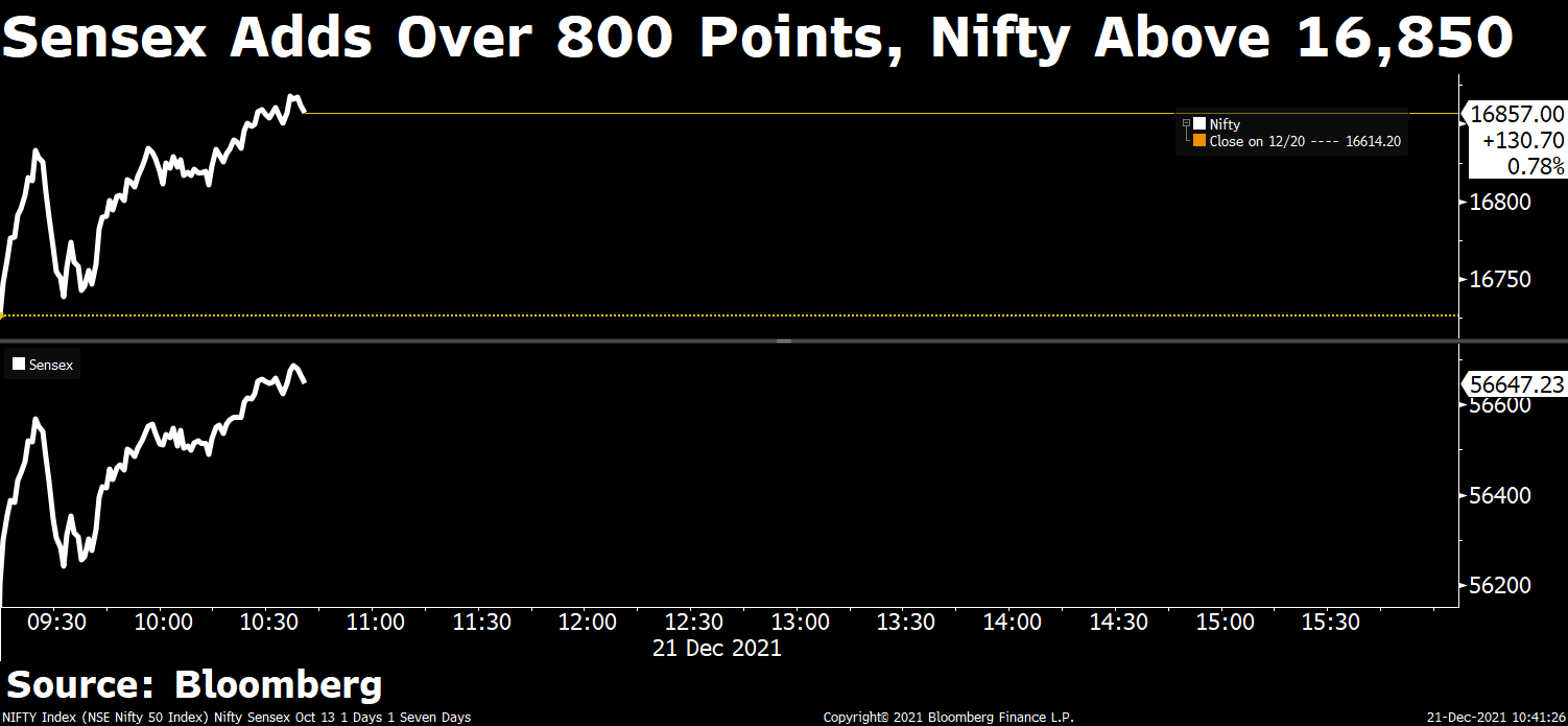 "Markets witnessed a decent rebound and gained nearly a percent, taking a breather after the recent fall. The benchmark opened with an uptick and inched further higher however selling pressure in the latter half trimmed the gains", Ajit Mishra, VP - Research at Religare Broking Ltd. wrote in a note. He added "the updates on the new variant are keeping the choppiness high globally and we expect this trend to continue in the near future. Among the sectors, only the IT pack has been showing a steady uptrend while others are trading mixed. In case of a further rebound, Nifty would face a hurdle around the 17,000-17,150 zone. Participants should limit leveraged positions until we see some stability".