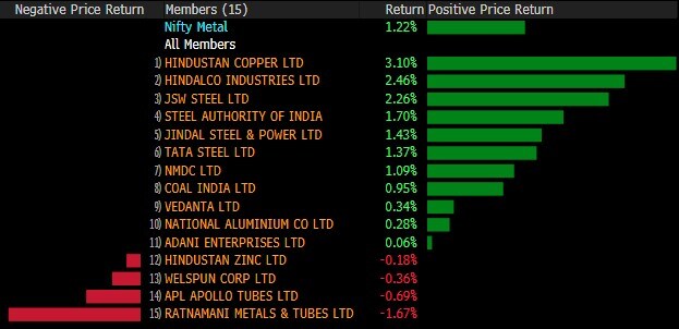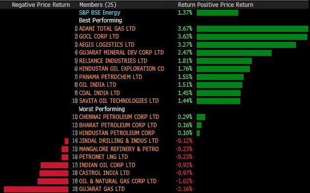 The S&P BSE MidCap almost mirrored its broader peers with 1% rise while S&P BSE SmallCap index underperformed, with gains over 0.3%. Sixteen of the 19 sectoral indices compiled by BSE advanced with S&P BSE Metal index and S&P BSE Energy index leading the gains.