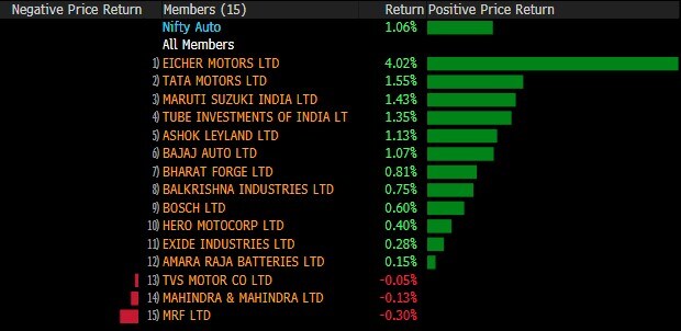 • Shares of Bajaj Auto Ltd. declined for the 10th straight day, on track for the longest losing streak since 2008.