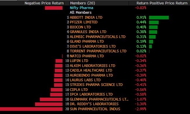 Shares of PI Industries Ltd. fell 8.23%, the steepest intraday decline in 18 months, to Rs 2,834.4 apiece after the company cancelled proposal to buy Ind Swift Laboratories.