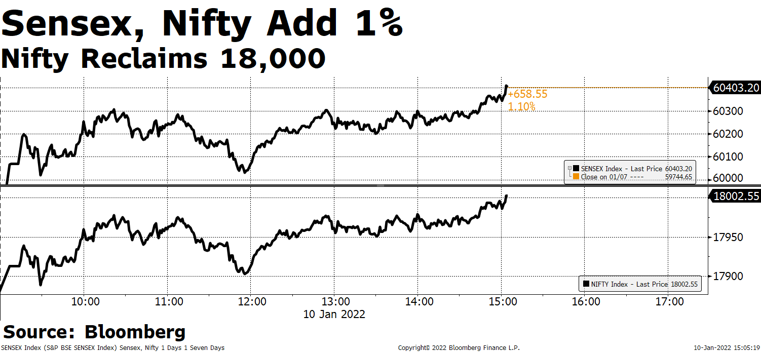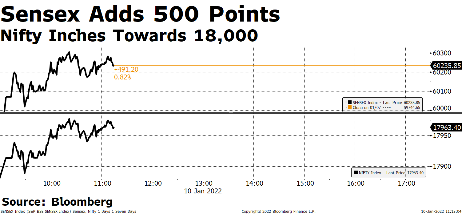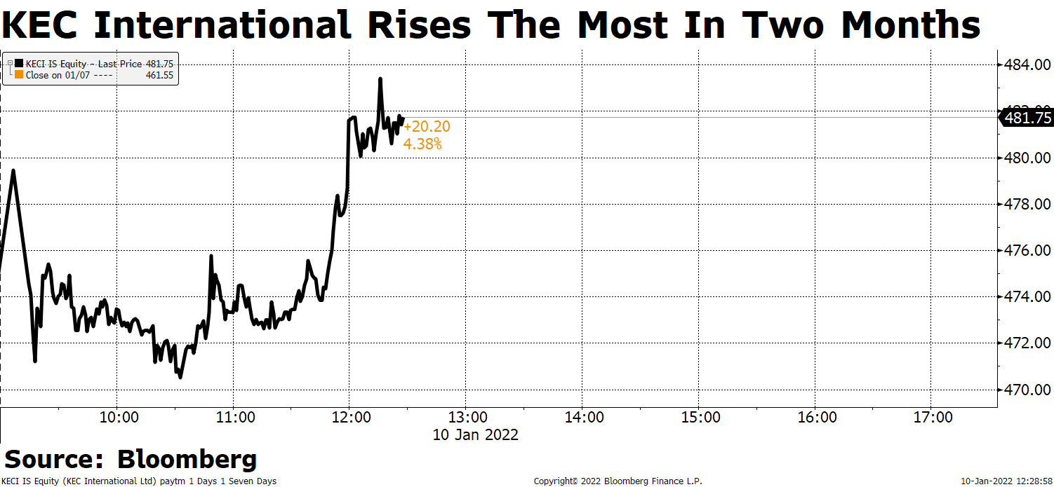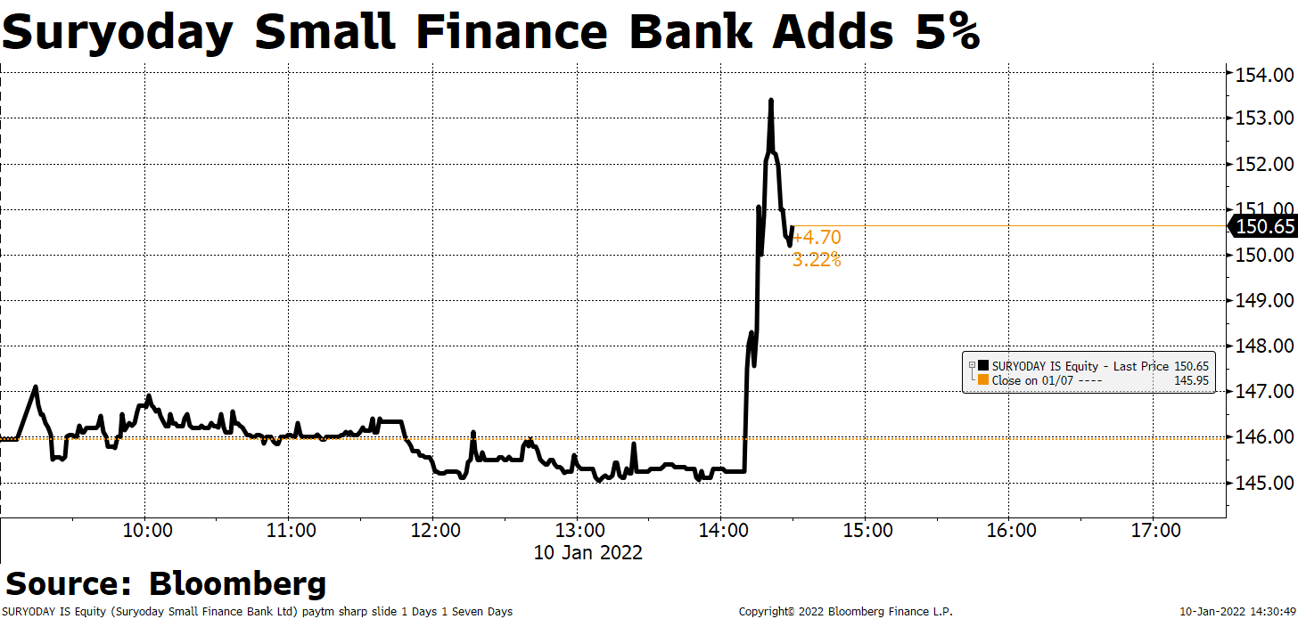 • Punjab National Bank Ltd.'s shares advance for the seventh straight day, on track for the longest winning streak in over 25 months.