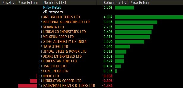 The broader indices outperformed their larger peers with both the S&P BSE MidCap and S&P BSE SmallCap posting gains. Thirteen of the 19 sectoral indices compiled by BSE LTd. advanced, with S&P BSE Metal and Consumer Durables leading the gains. On the flipside, S&P BSE Energy shed over 1%.
