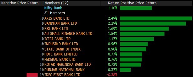 The market breadth was skewed in the favour of bulls. About 2,069 stocks advanced, 1,297 declined and 184 remained unchanged.