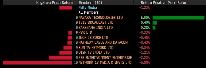 Shares of TV18 Broadcast Ltd. rose for the fifth consecutive day. This is the longest winning streak for the stock in over a year, since December 3, 2020. The stock has risen 24% during the streak while Sensex index rose 2.7%.