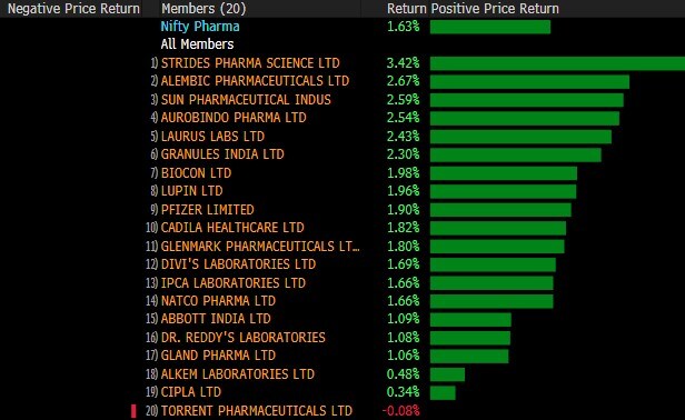 The broader indices almost mirrored their larger peers with S&P BSE MidCap adding 0.7% and S&P BSE SmallCap gaining 1%. All the 19 sectoral indices compiled by BSE Ltd. advanced, with S&P BSE Metal, Auto and Energy indices leading the gains.