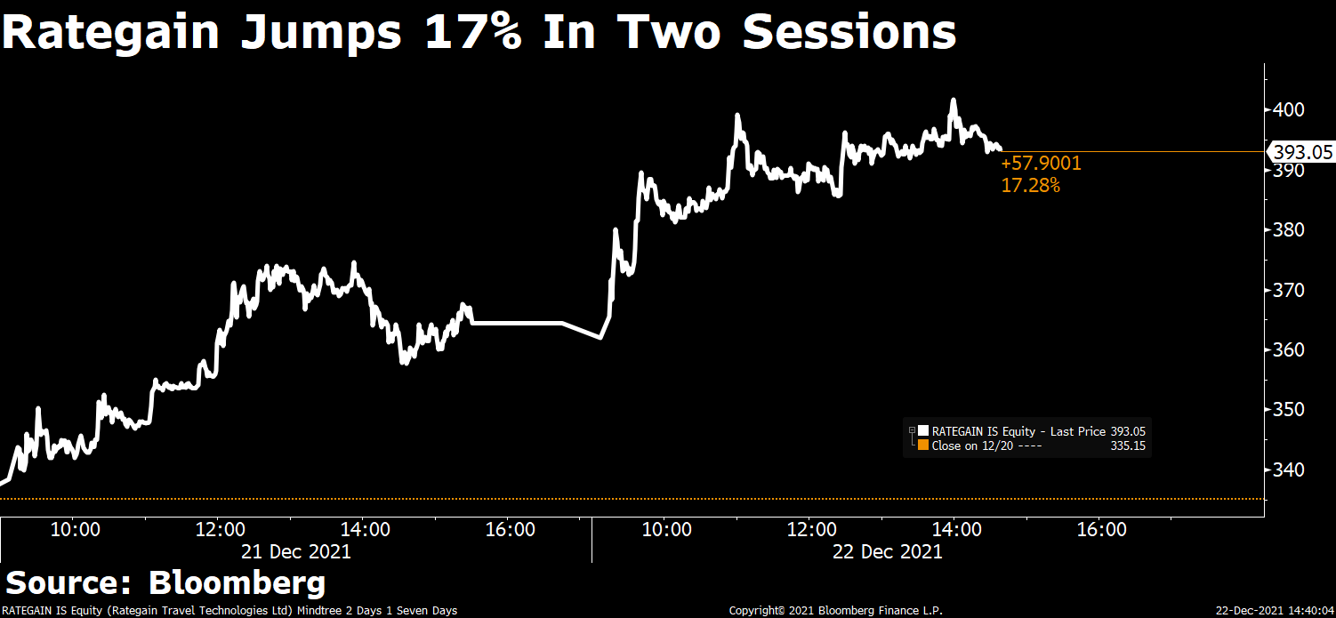 Shares of engineering and technology solutions firm Mindteck Ltd. rose 5% in intraday to Rs 175 apiece after the company bagged a new project from an analytical instrument client. Trading volume on the stock was 1.8 times the 30-day average volume, for this time of the day.