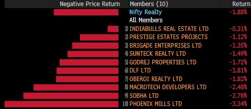 The S&P BSE MidCap almost mirrored its larger peers shedding 0.5% while the S&P BSE SmallCap ourperformed, with 0.2% fall. Thirteen of the 19 sectoral indices compiled by the BSE Ltd. declined with S&P BSE Finance shedding nearly 1%.