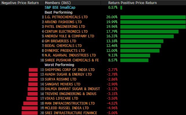The broader indices outperformed their larger peers with the S&P BSE MidCap adding 0.2% and S&P BSE SmallCap gaining nearly 0.5%. Eleven of the 19 sectoral indices compiled by the BSE Ltd. advanced, with S&P BSE Power and S&P BSE Oil & Gas indexes gaining over 1%.