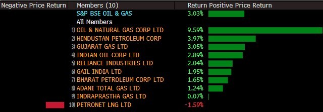 India: Oil & Natural Gas surges as much as 10% to highest since July 2019; Indian Oil climbs 3.4%