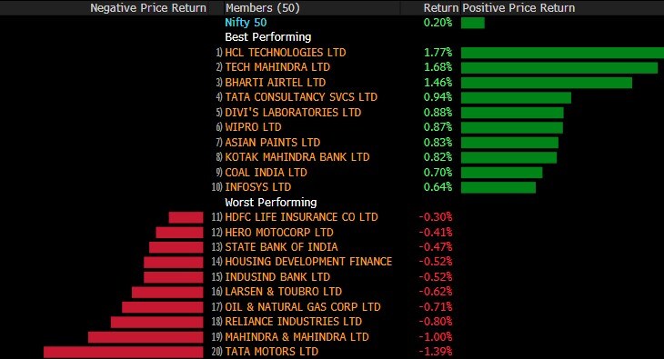 The broader indices outperformed their larger peers with the S&P BSE MidCap and S&P BSE SmallCap gaining 0.5%. Barring S&P BSE Energy and S&P BSE Capital Goods indices, all the other 17 sectoral indices compiled by the BSE Ltd. advanced, with S&P BSE Telecom adding 1.75%