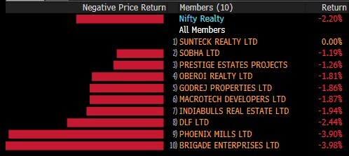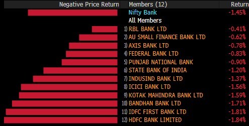 The broader indices outperformed their larger peers with both the S&P BSE MidCap and S&P BSE SmallCap shedding 0.7%. Barring S&P BSE Healthcare and S&P BSE Telecom, all the other sectoral indices compiled by BSE Ltd. declined with S&P BSE Information Technology and S&P BSE Finance falling over 1.25%.