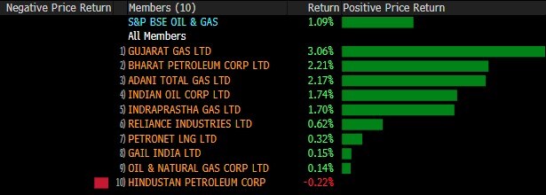 The S&P BSE MidCap index underperformed its larger peers, adding 0.3% while S&P BSE SmallCap index almost mirrored Sensex and Nifty, gaining over 0.6%. Sixteen of the 19 sectoral indices compiled by BSE Ltd. advanced, with S&P BSE Oil & Gas, S&P BSE Utilities and S&P Information Technology index gaining over 1.25%.