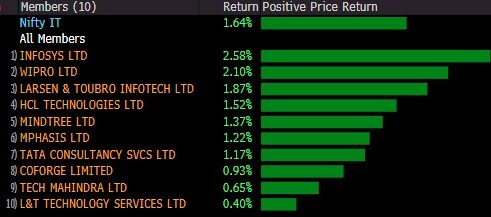 Shares of I.T companies like Tata Consultancy Services, Infosys, Wipro, HCL Technologies and Tech Mahindra rose in an otherwise tepid market, after their global peer Accenture upgraded its annual guidance by 700bps. Accenture continues to benefit from cloud transformation and the strong commentary indicates the stickiness of the demand for I.T. services.