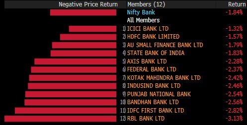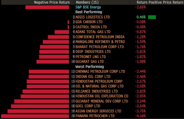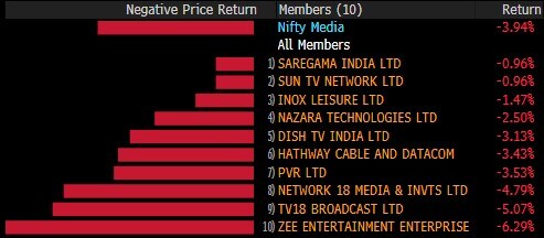 The broader indices almost mirrored their larger peers with the S&P BSE MidCap shedding 2% and S&P BSE SmallCap falling 1.5%. Barring S&P BSE Information Technology and Teck, all the other 17 sectoral indices declined with S&P BSE Realty slipping over 3%.