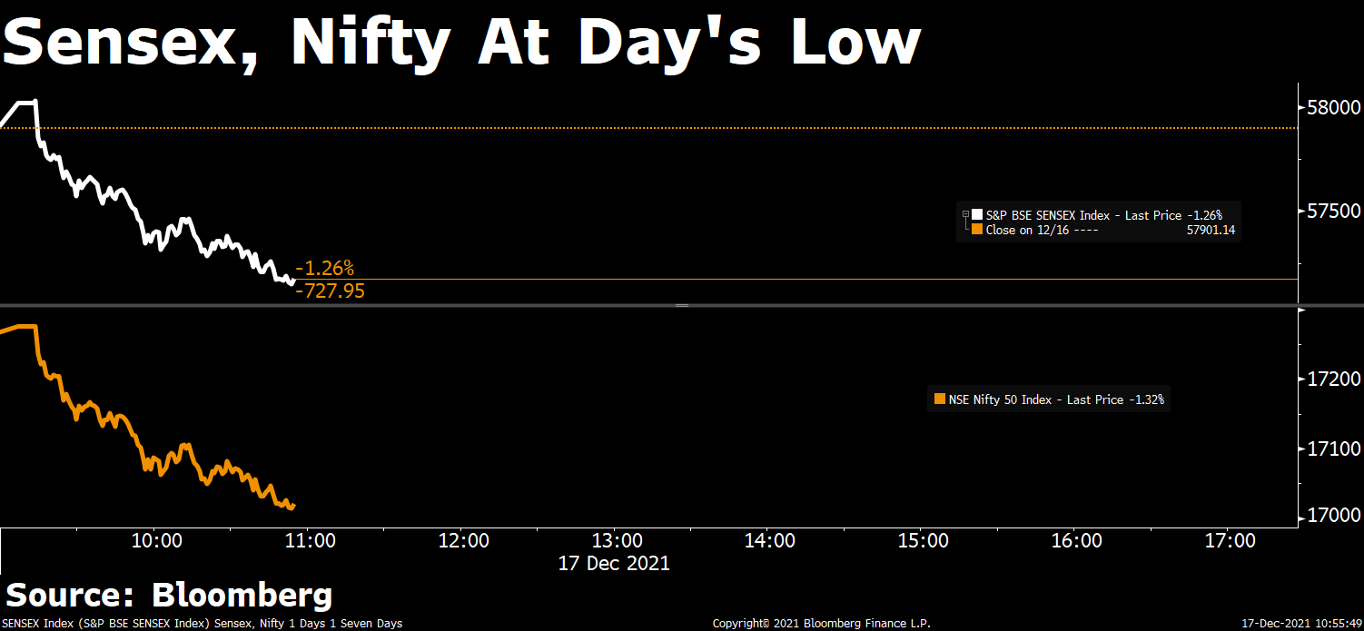 India's stock benchmarks opened little changed, as gains in information technology stocks were offset by losses in dragged by consumer durables and auto stocks, amid concerns over impact of faster tapering, omicron variant and geopolitical tensions following U.S. sanctions on China.