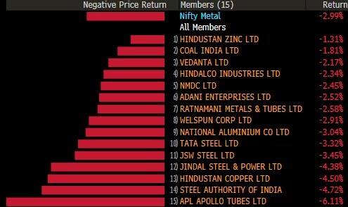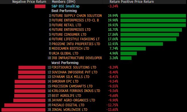 The broader indices underperformed their larger peers with both the S&P BSE MidCap and S&P BSE SmallCap shedding nearly 4%. All the 19 sectoral indices compiled by BSE Ltd. declined, with S&P BSE Realty falling 5.5% while S&P BSE Metal and S&P BSE Finance losing 4%.