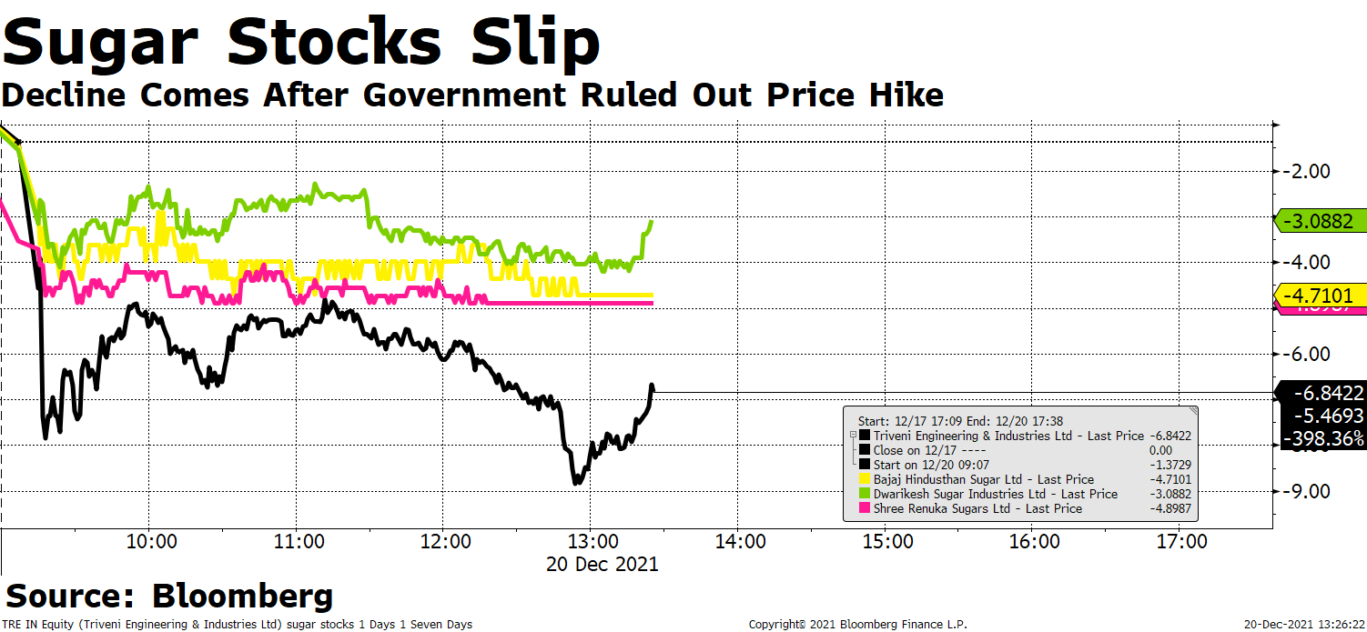 In Focus: Sugar-related stocks like Dwarikesh Sugar Industries, Bajaj Hindusthan Sugar, Shree Renuka Sugar, Triveni Engineering.