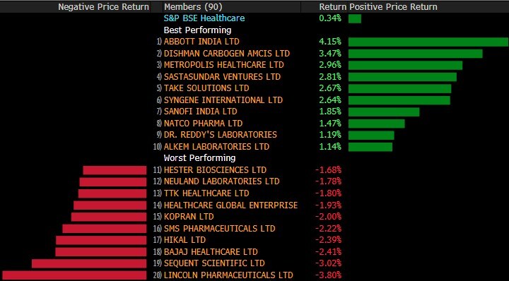 The broader indices outperformed their larger peers with the S&P BSE MidCap and S&P BSE SmallCap declining 0.2% . Fifteen of the 19 sectoral indices compiled by the BSE Ltd. declined, with S&P BSE Metal index shedding nearly 1.5%.